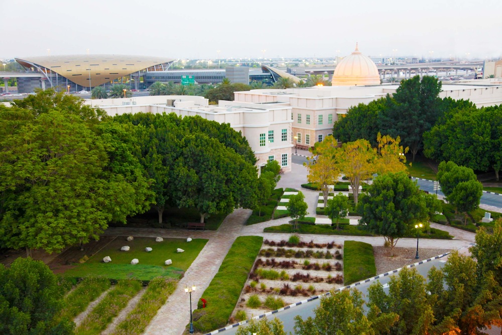 The campus of The American University in Dubai is the material expression of the university’s Mission and character. Two words come to mind in describing this campus – American and world-class: “American” because of its sobriety and Jeffersonian architectural rigor, “world-class” because of the notable quality of the physical plant and accompanying facilities.
